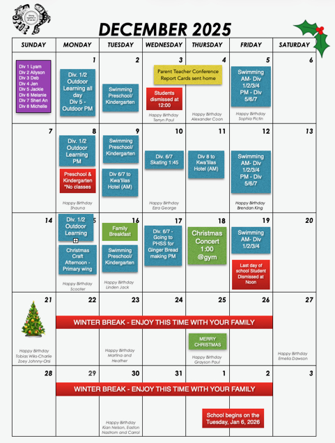 December Parents Calendar 2025