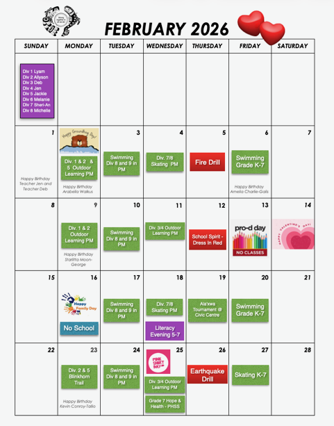 February Parents Calendar 2025