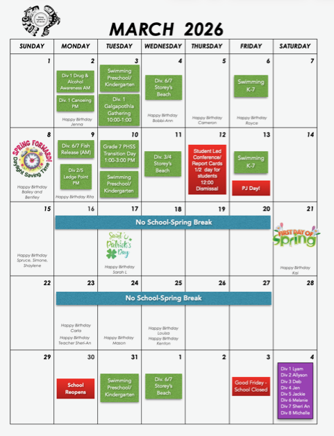 March Parents Calendar 2026